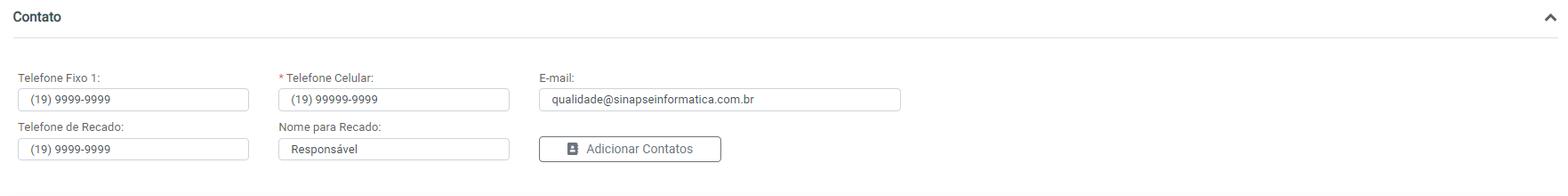 Logo abaixo dos dados pessoais, temos o bloco de contatos do Lead. Este é utilizado para registrar os meios de contato em que o cliente final se encontra. Existem também campos direcionadas para recado, podendo ser de terceiros e, caso ainda não seja suficiente, é possível vincular novos contatos selecionando a opção “Adicionar Contatos":