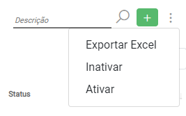 No canto superior direito da página, é possível acessar o Menu de Opções (3 pontinhos) e encontrar algumas ações para atualização em massa dos registros.