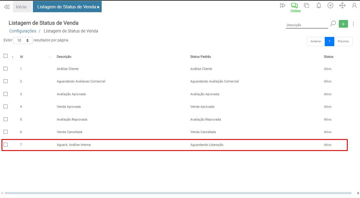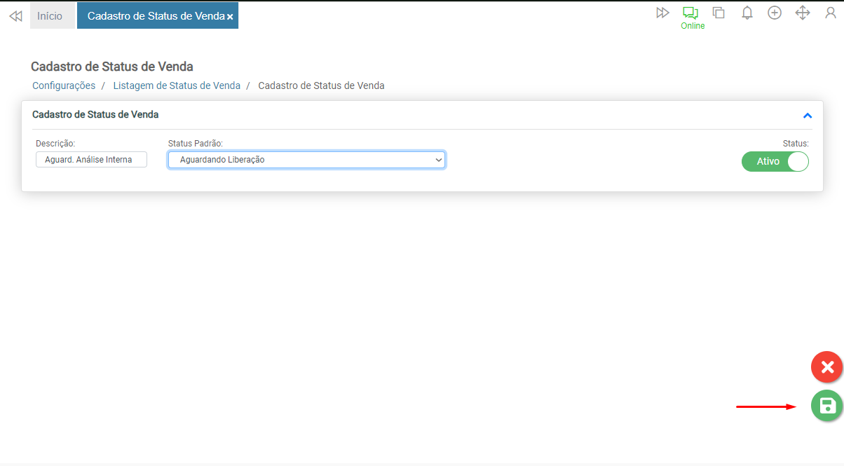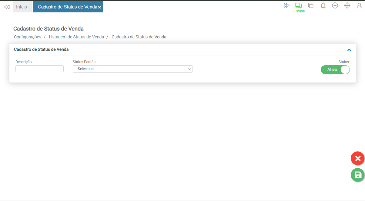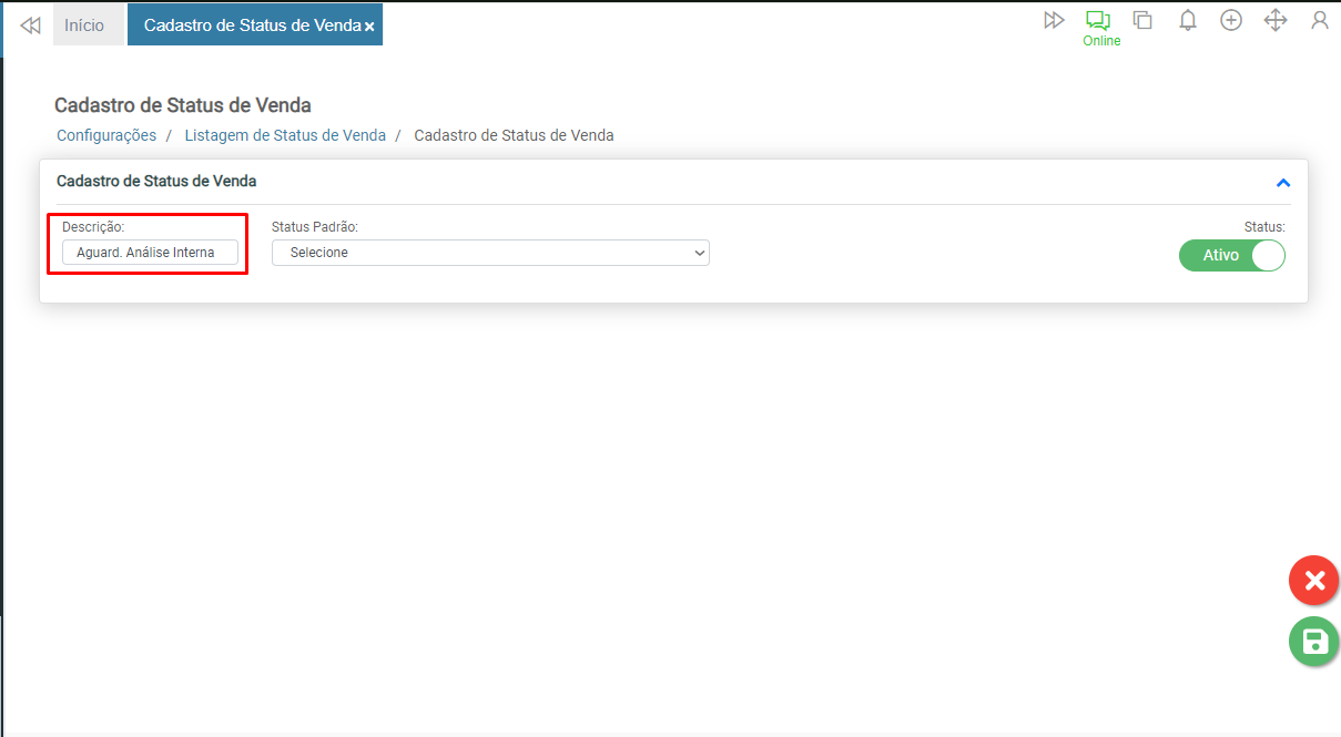 Informe no campo Descrição a identificação do status de venda.