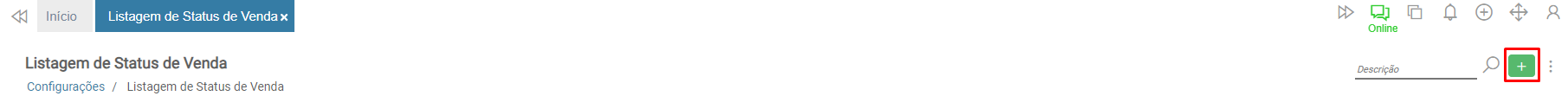 Para cadastrar um novo status de venda, clique no botão incluir.