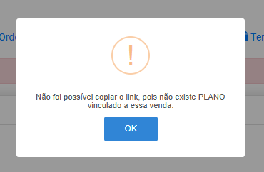 Não havendo plano vinculado à venda, a cópia do link NÃO será realizada e o sistema apresentará uma crítica: