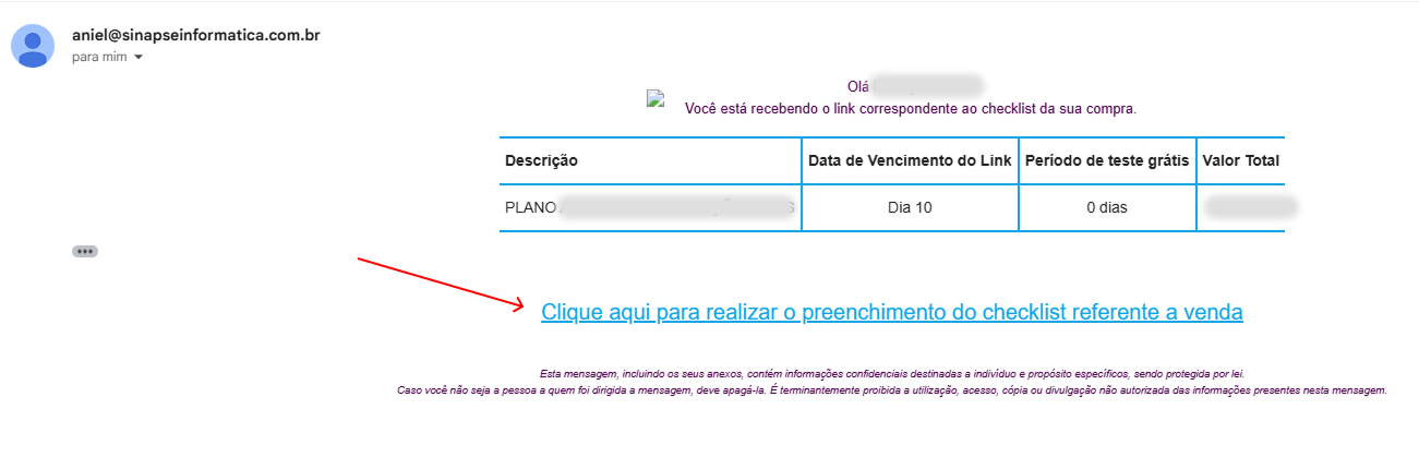 Ao clicar em Reenviar Checklist, e selecionar SIM na modal, será emitido novamente o checklist para preenchimento, que será enviado via link no e-mail cadastrado do cliente. Ao selecionar NÃO, a modal se fechará.