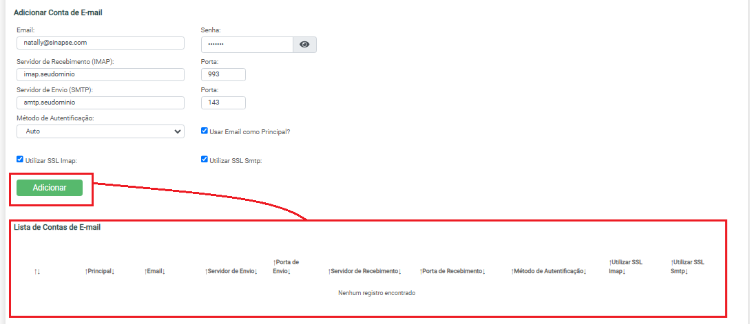 - Senha - Senha da conta de e-mail;