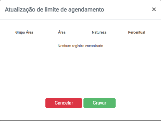 Esse recurso utiliza a porcentagem configurada na tela Limite de Agendamento e permite alterar o limite informado.