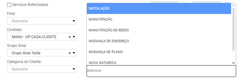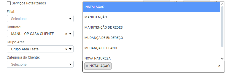 Para o filtro Natureza, é possível selecionar múltiplas opções, conforme ilustrado nas imagens abaixo: