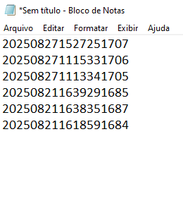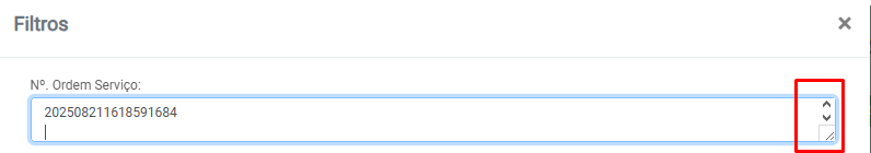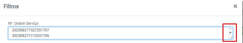 Selecione as ordens de serviço, copie e cole no campo Nº Ordem de Serviço. As ordens serão listadas uma abaixo da outra. Use as setas à direita do campo para verificar se as informações foram inseridas corretamente.