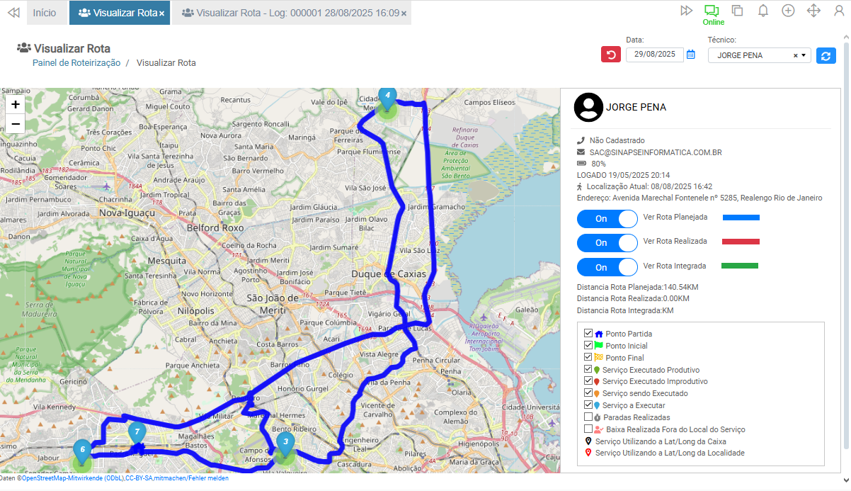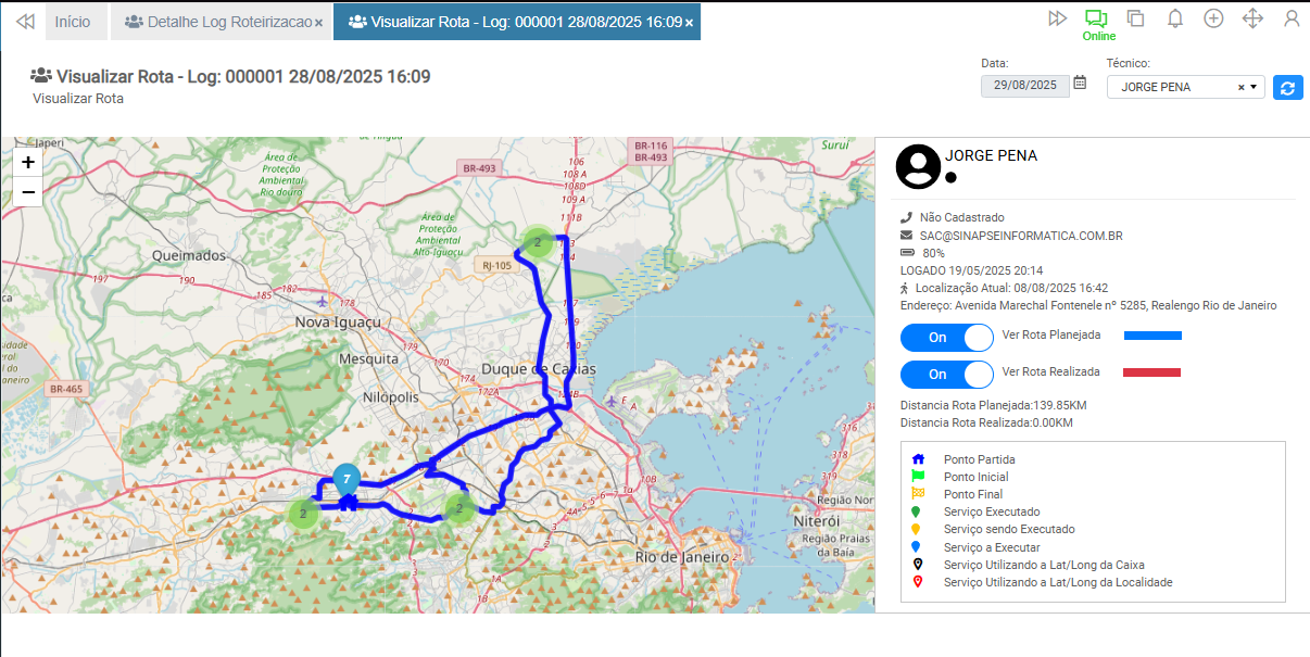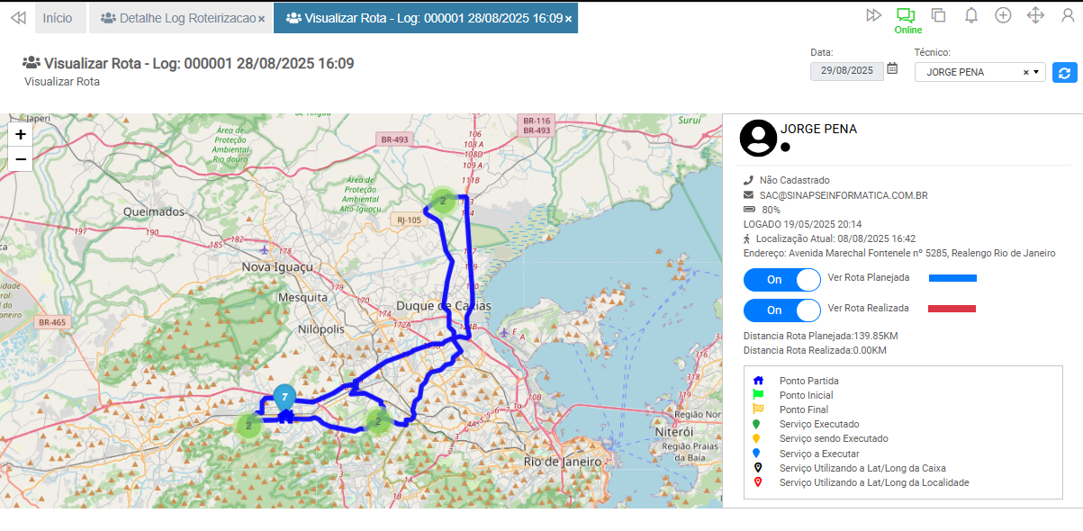 As informações de rotas integradas não são exibidas, pois a rota considerada é a do log. Também não são identificados serviços que utilizam latitude e longitude da caixa ou localidade, já que o Aniel Connect consulta essas informações antes de roteirizar.