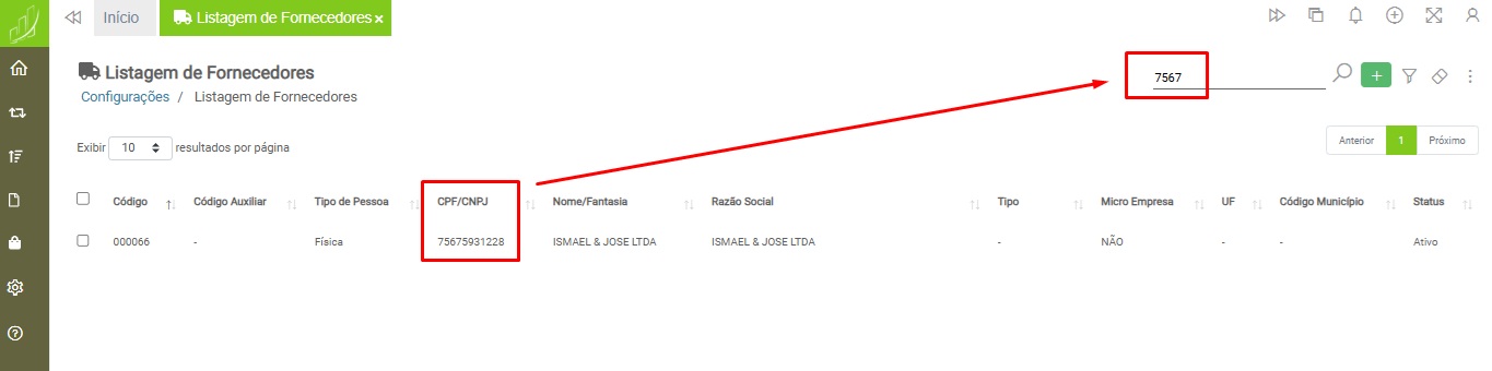 Para realizar a edição de um registro, primeiro deverá ser realizada a busca na listagem de fornecedores.