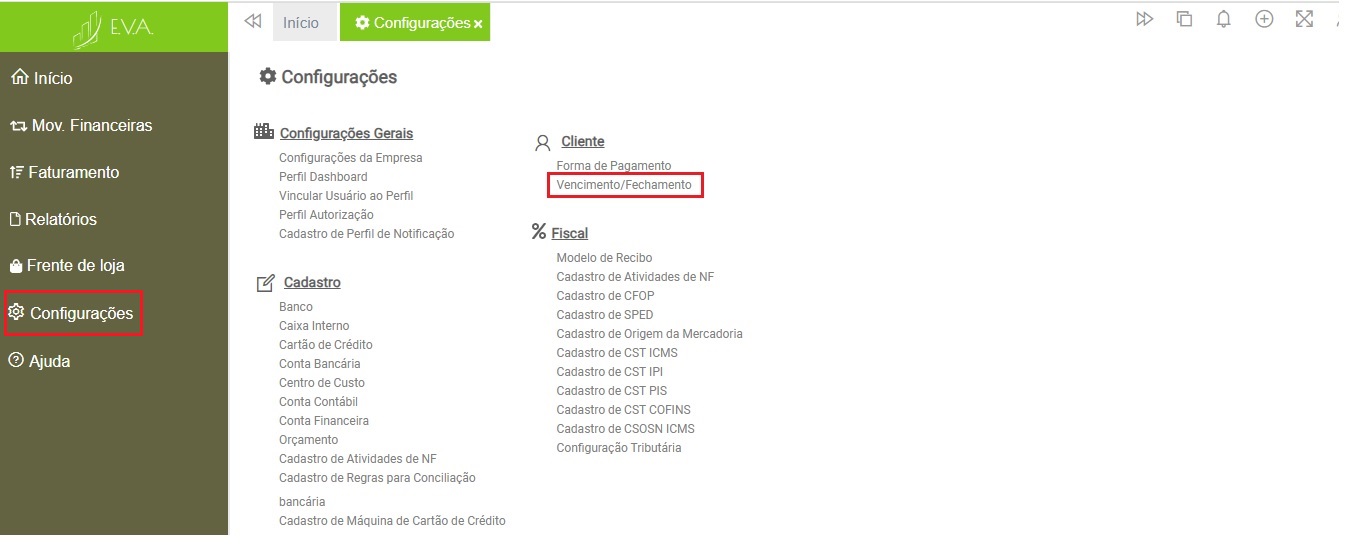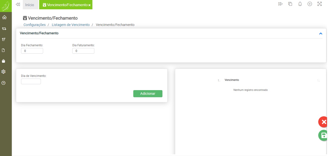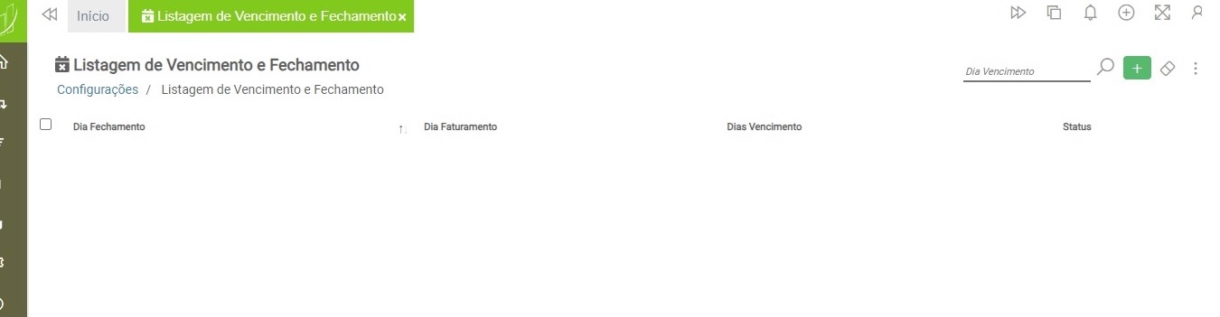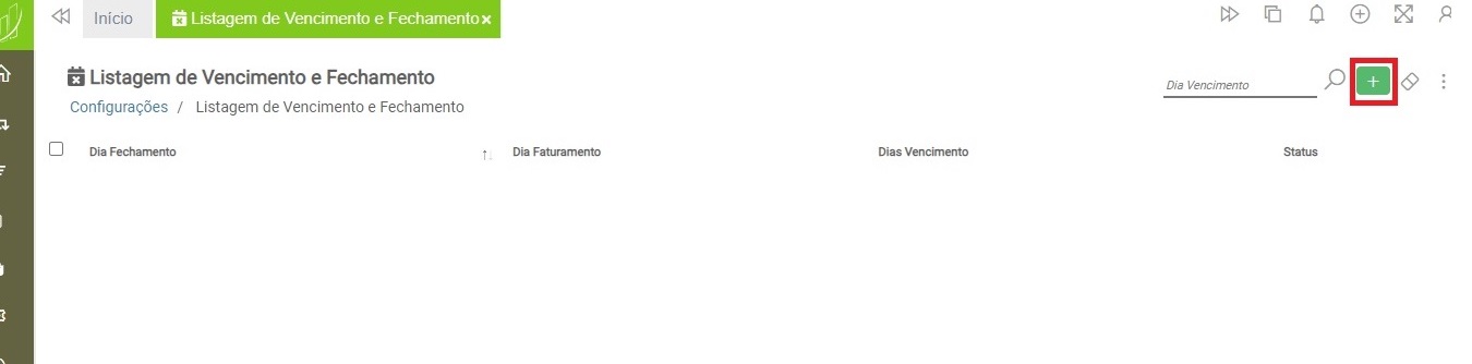 Para cadastrar as datas de fechamento, faturamento e vencimento, clique no botão Incluir.