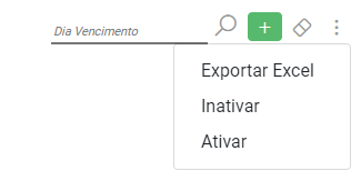 No canto superior direito da página, é possível acessar o Menu de Opções (3 pontinhos) e encontrar algumas ações para atualização em massa dos registros.