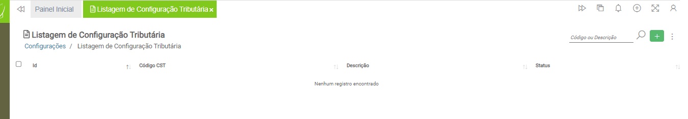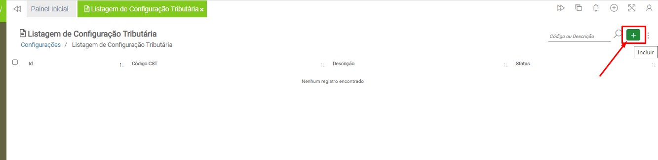 Para cadastrar uma nova Configuração Tributária, clique no botão “Incluir”: