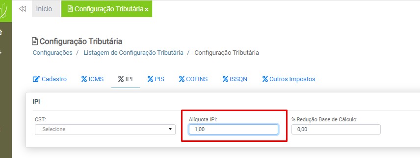 Alíquota IPI – Digite o percentual de alíquota para o IPI.