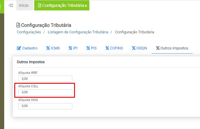 Alíquota CSLL – Digite o percentual de alíquota para o CSLL.