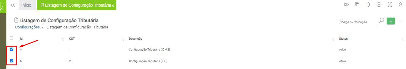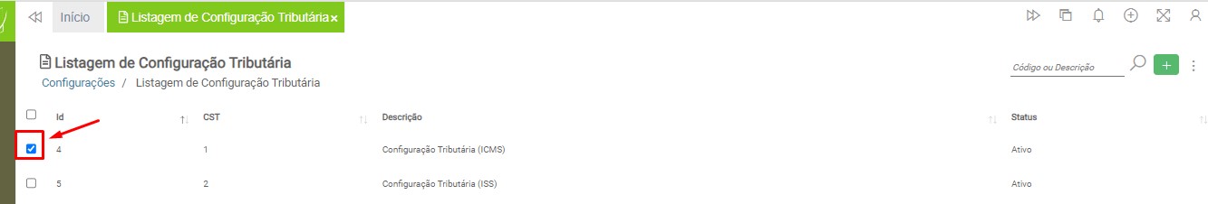 Marque a caixa de seleção, localizada do lado esquerdo da configuração tributária realizada anteriormente.