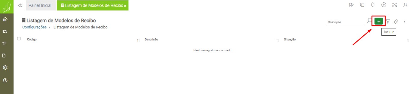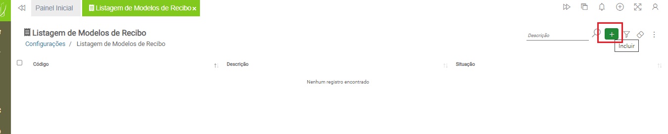 Para cadastrar um novo modelo de recibo, clique no botão “Incluir”: