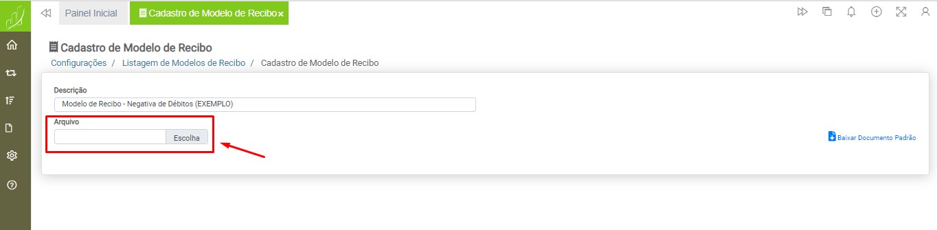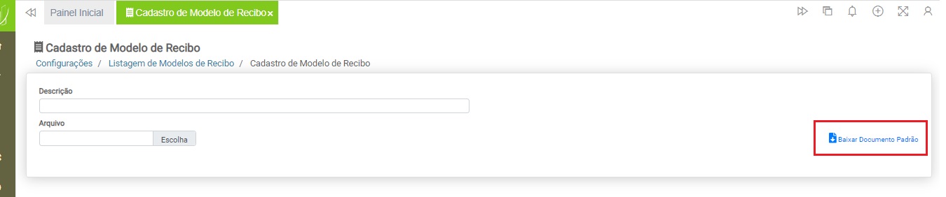Na tela seguinte, clique no botão chamado “Baixar Documento Padrão”, para baixar o modelo de recibo disponibilizado pelo sistema.