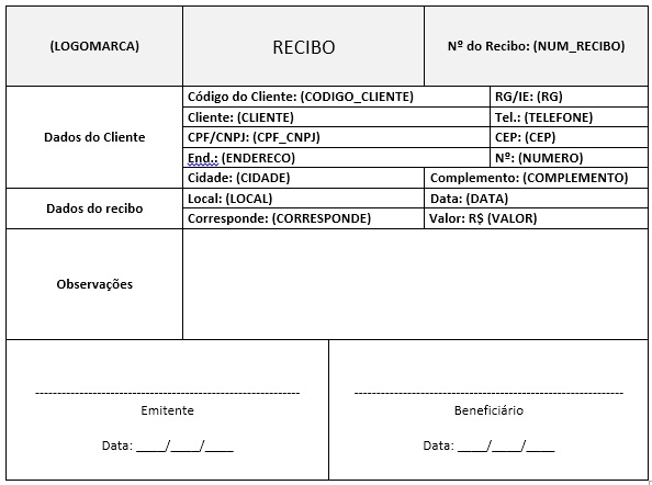O documento Word ainda disponibiliza um campo de Observações, para que sejam inseridas informações complementares, informações importantes que devem constar no corpo do recibo, no momento da emissão deste documento.