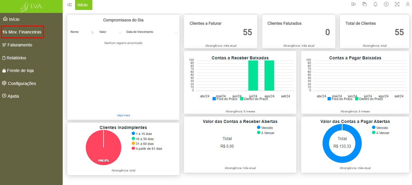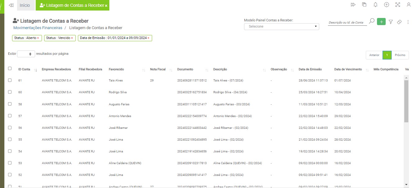 Após este procedimento, o Aniel EVA exibirá somente as contas a receber com status “Baixado”.