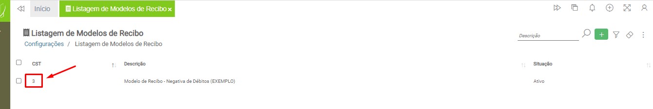 Caso necessite alterar a descrição, retorne ao cadastro de modelo de recibo realizado, clicando na linha correspondente.