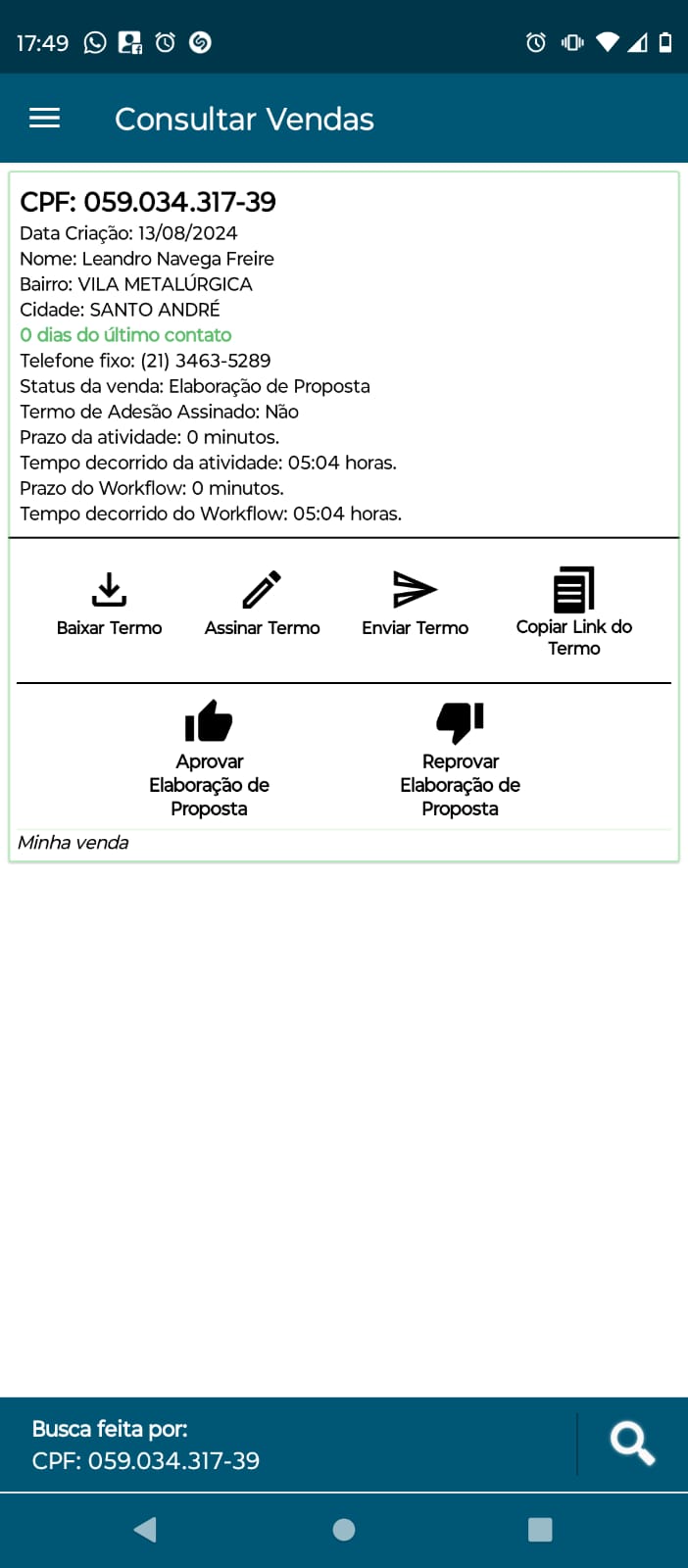 Obs: quando a venda possui workflow e o termo é assinado, a primeira etapa é aprovada automaticamente.