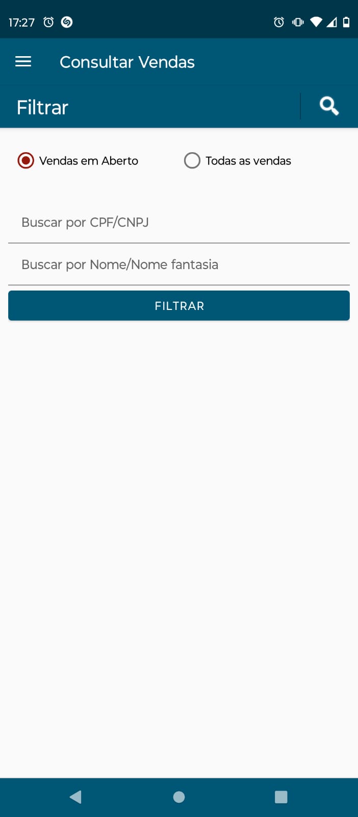É possível consultar vendas em aberto informando o CPF ou CNPJ do cliente ou o nome (pessoa física) ou nome fantasia (pessoa jurídica). Essas informações originam-se do recurso Cadastrar Lead.