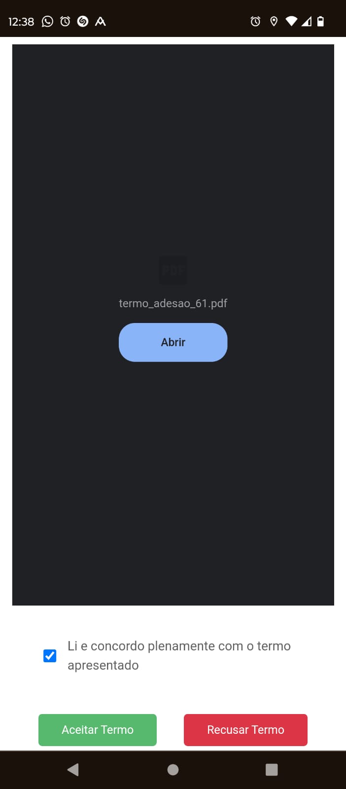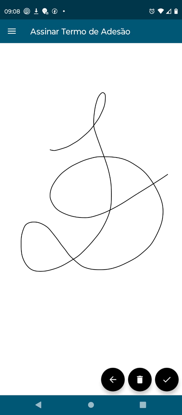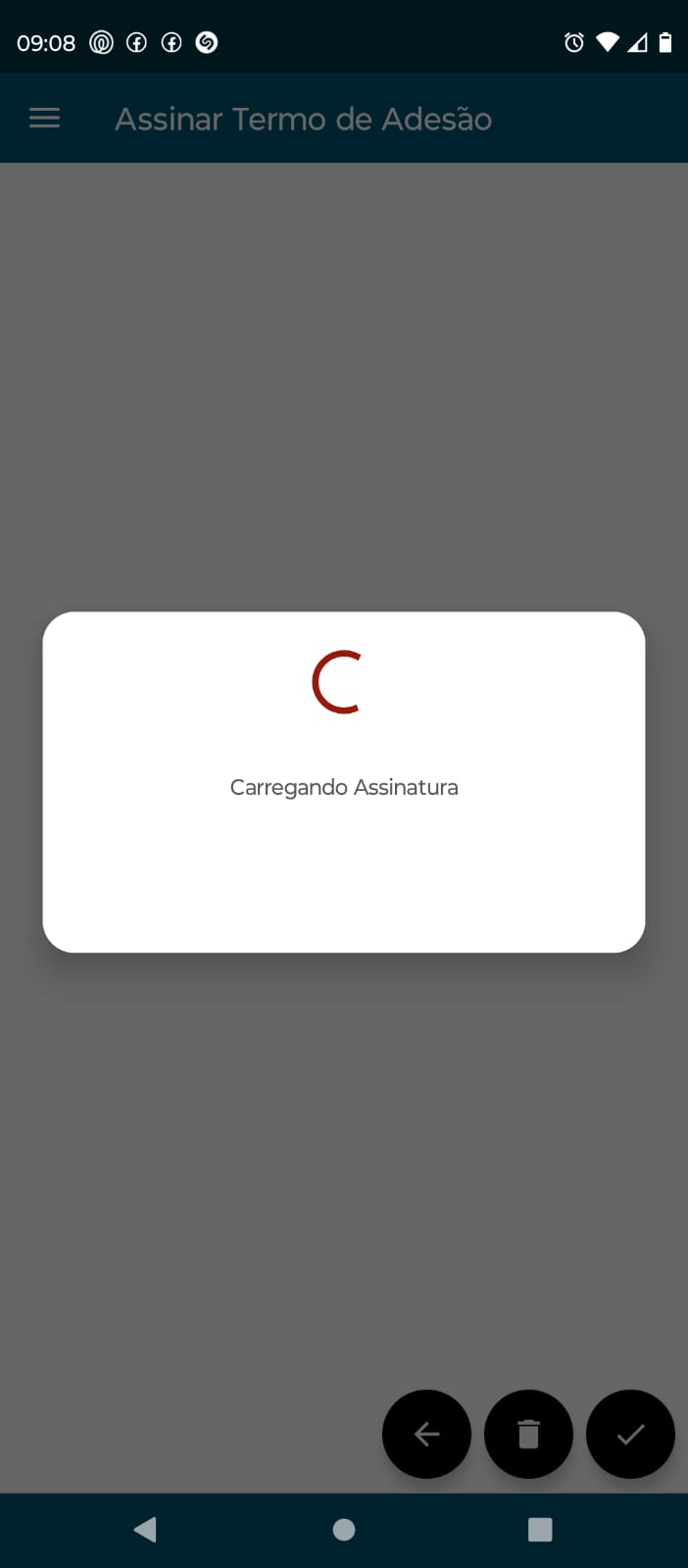 Assinar Termo: caso a assinatura não tenha sido feita no cadastro de venda, é possível assinar por aqui, além de alterar a assinatura anterior. Se já houver assinatura, o app irá carrega-la após alguns segundos;