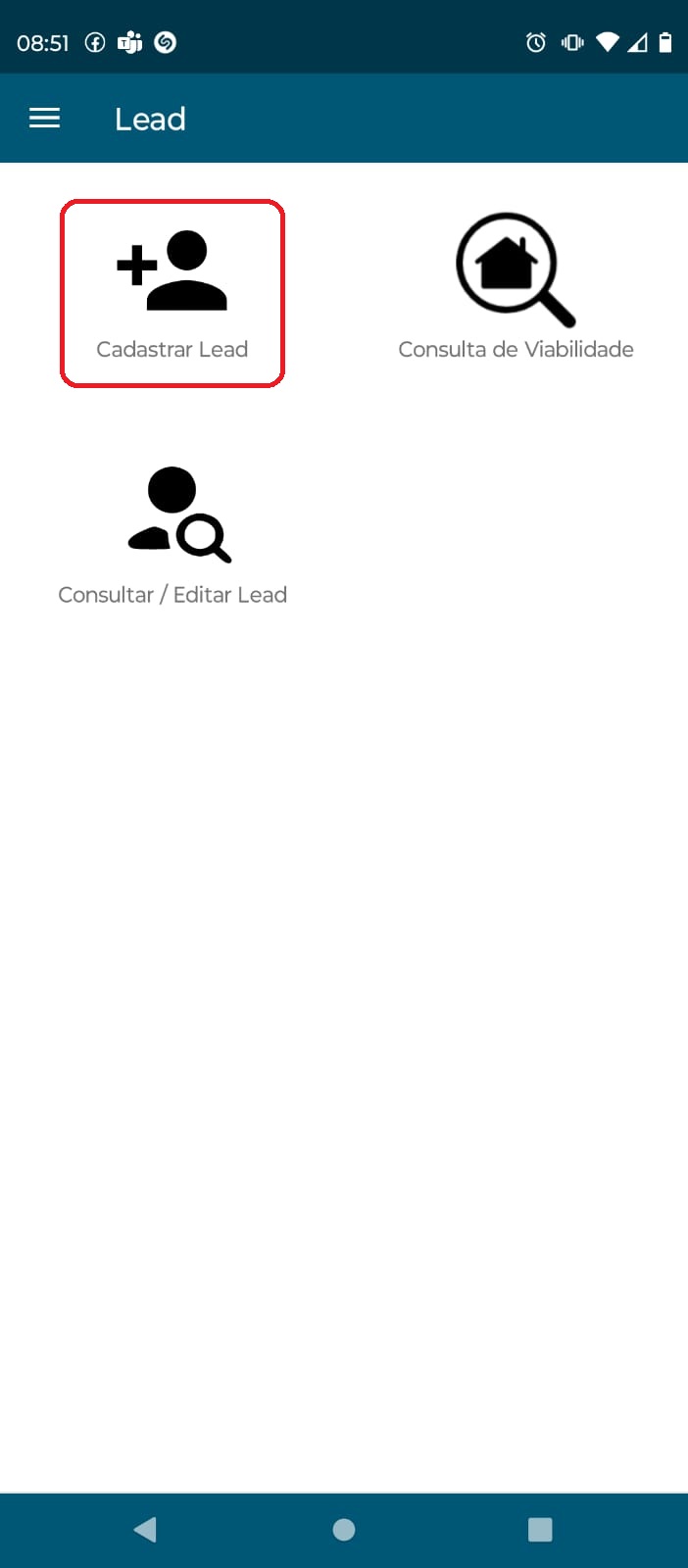 Esse é o acesso para o recurso Lead Viabilidade e Cadastro: