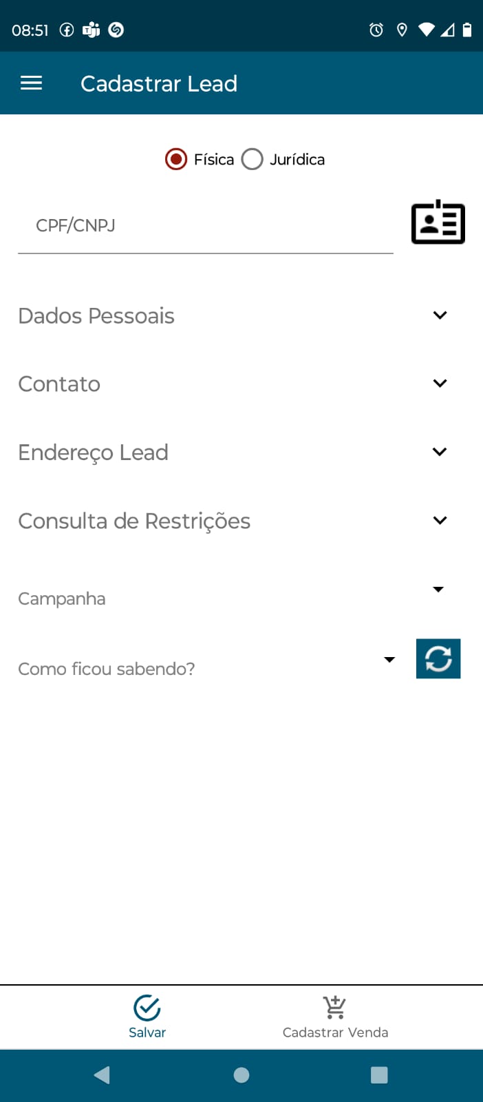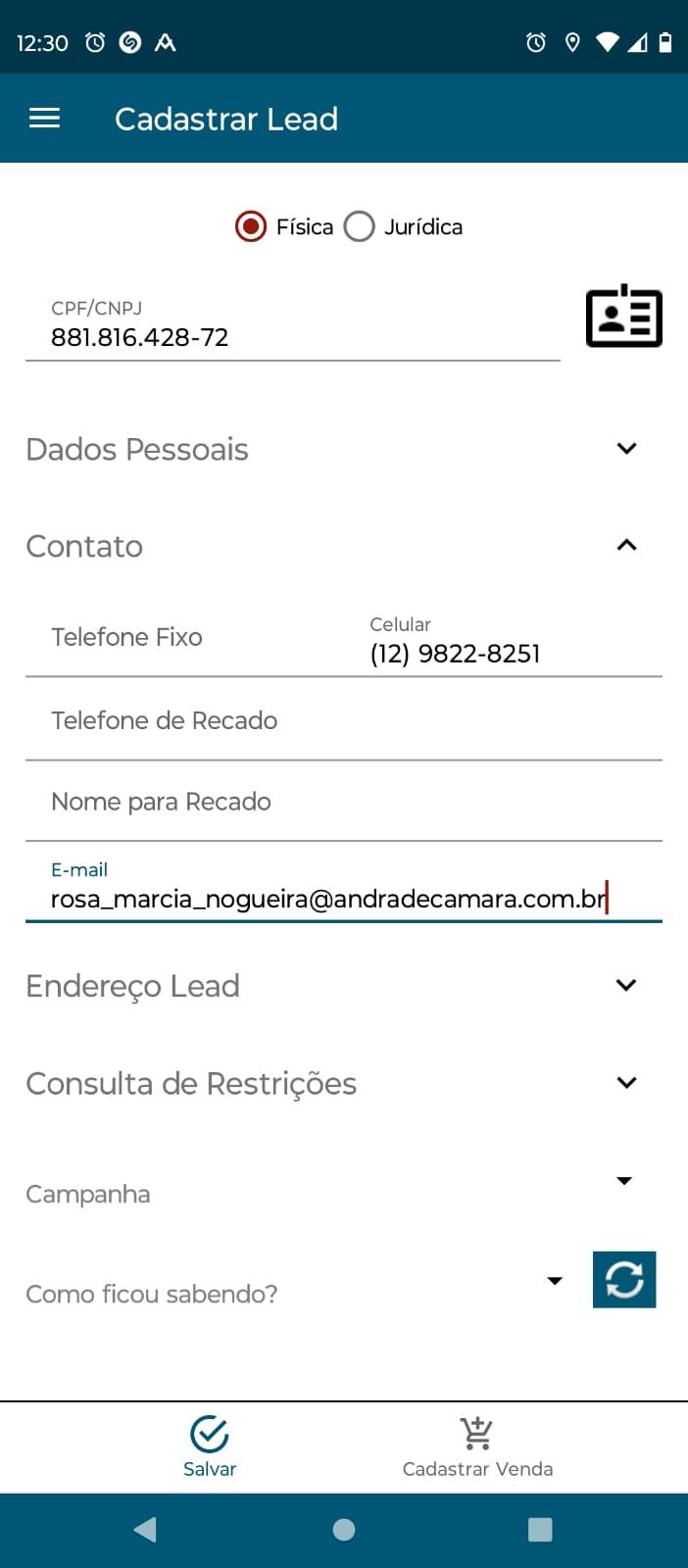 Ao final do cadastro deve ser informado o nome da Campanha e como ficou sabendo. Também é possível apenas salvar os registros ou já entrar diretamente no recurso Cadastrar Venda.