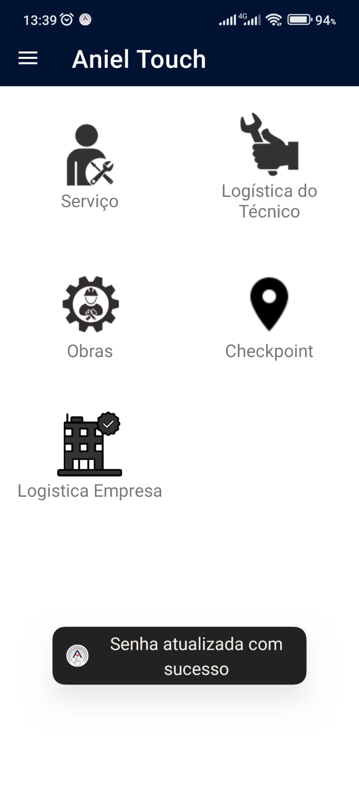 Após clicar, caso as informações estejam corretas, retornará à tela inicial com o aviso confirmando a atualização da senha.