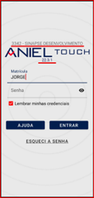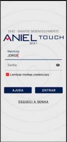 Caso já utilize o sistema Aniel por outros meios (Desktop ou Web), utilize o mesmo usuário e senha existentes.