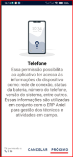 • É fundamental conceder todas as permissões solicitadas (Telefone, Localização e Arquivos) para garantir o funcionamento correto do aplicativo.